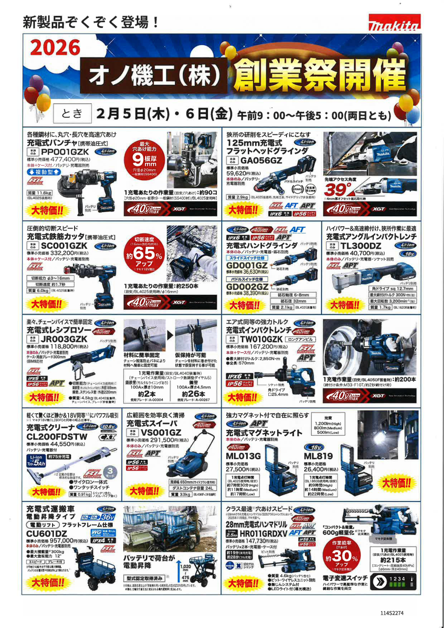 株式会社マキタ 大分営業所にて、マキタフェアが下記日程で開催されます!