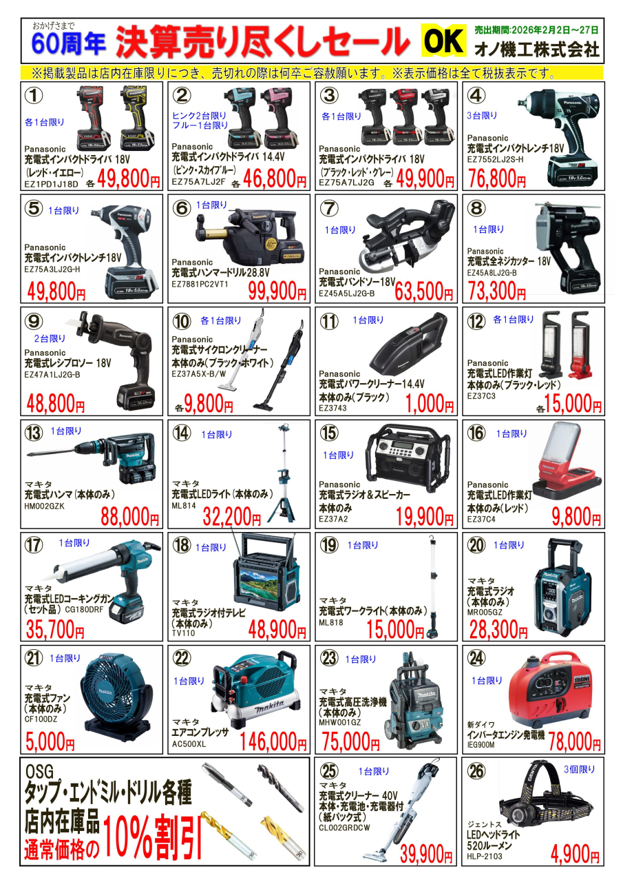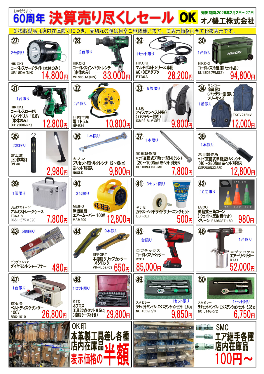 2月2日(月)~27日(金)にかけて、創業60周年記念 決算売り尽くしセールを開催します。